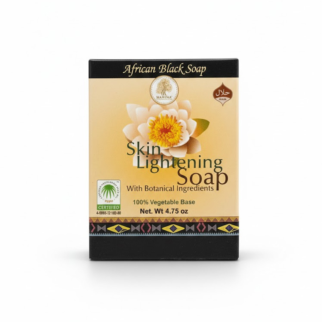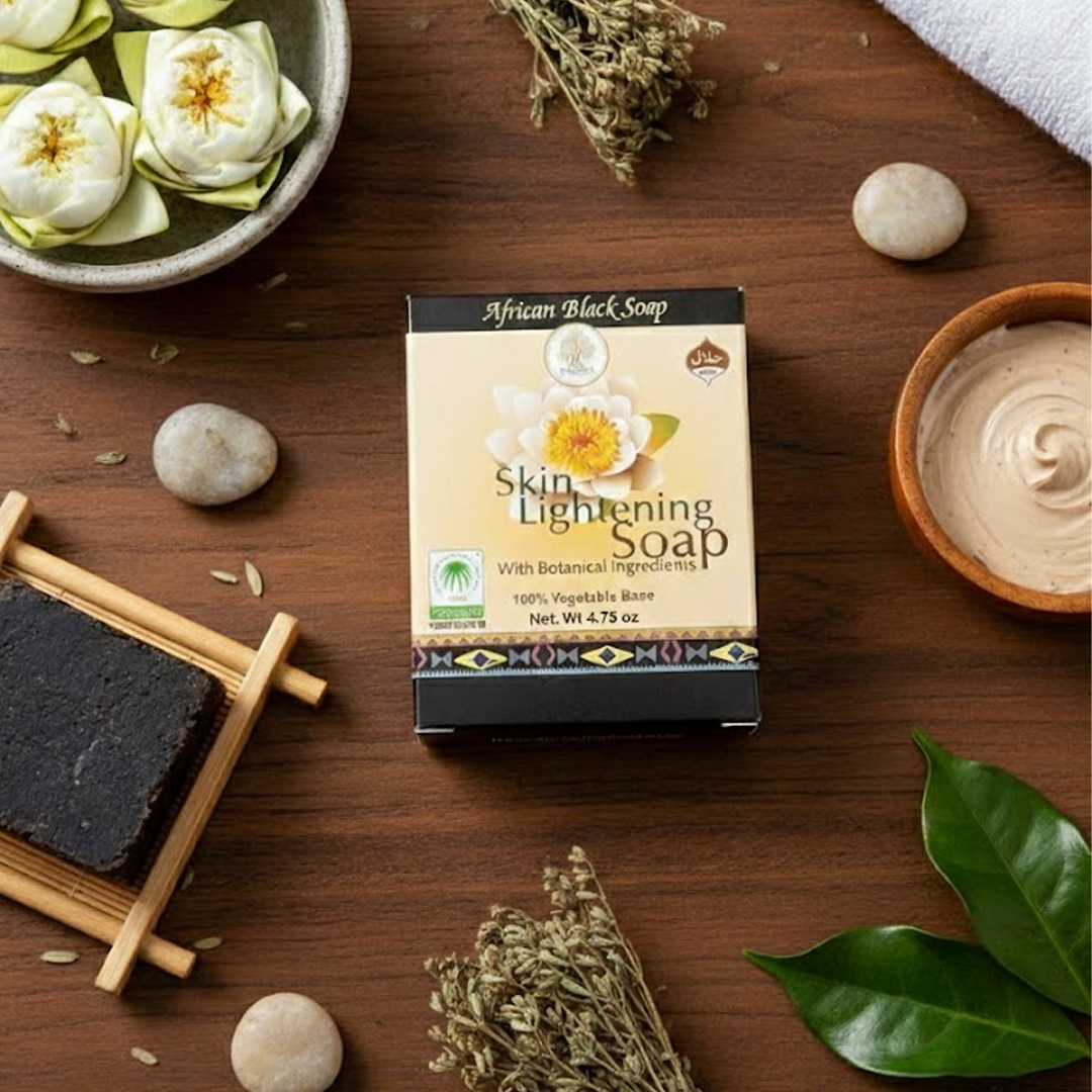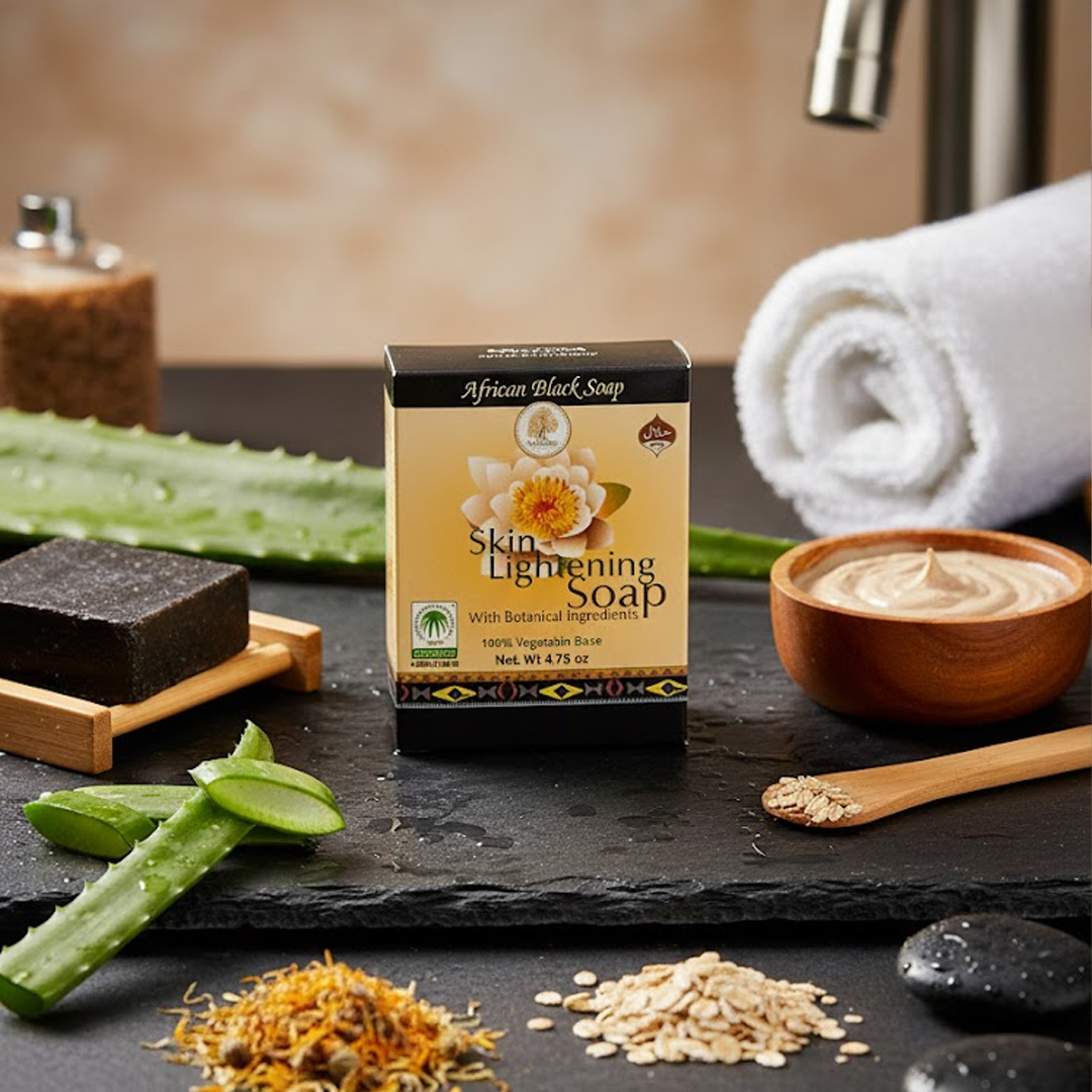 What sets this bar apart is its unique blend of botanical ingredients specifically chosen for their lightening and brightening properties. By combining the deep-cleansing heritage of African Black Soap with modern botanical science, this soap effectively targets dark spots and hyperpigmentation without the use of harsh, synthetic chemicals. It provides a rich, luxurious lather that lifts away impurities, leaving your skin feeling refreshed, balanced, and visibly brighter. Perfect for daily use, it’s an essential step in any brightening skincare routine.