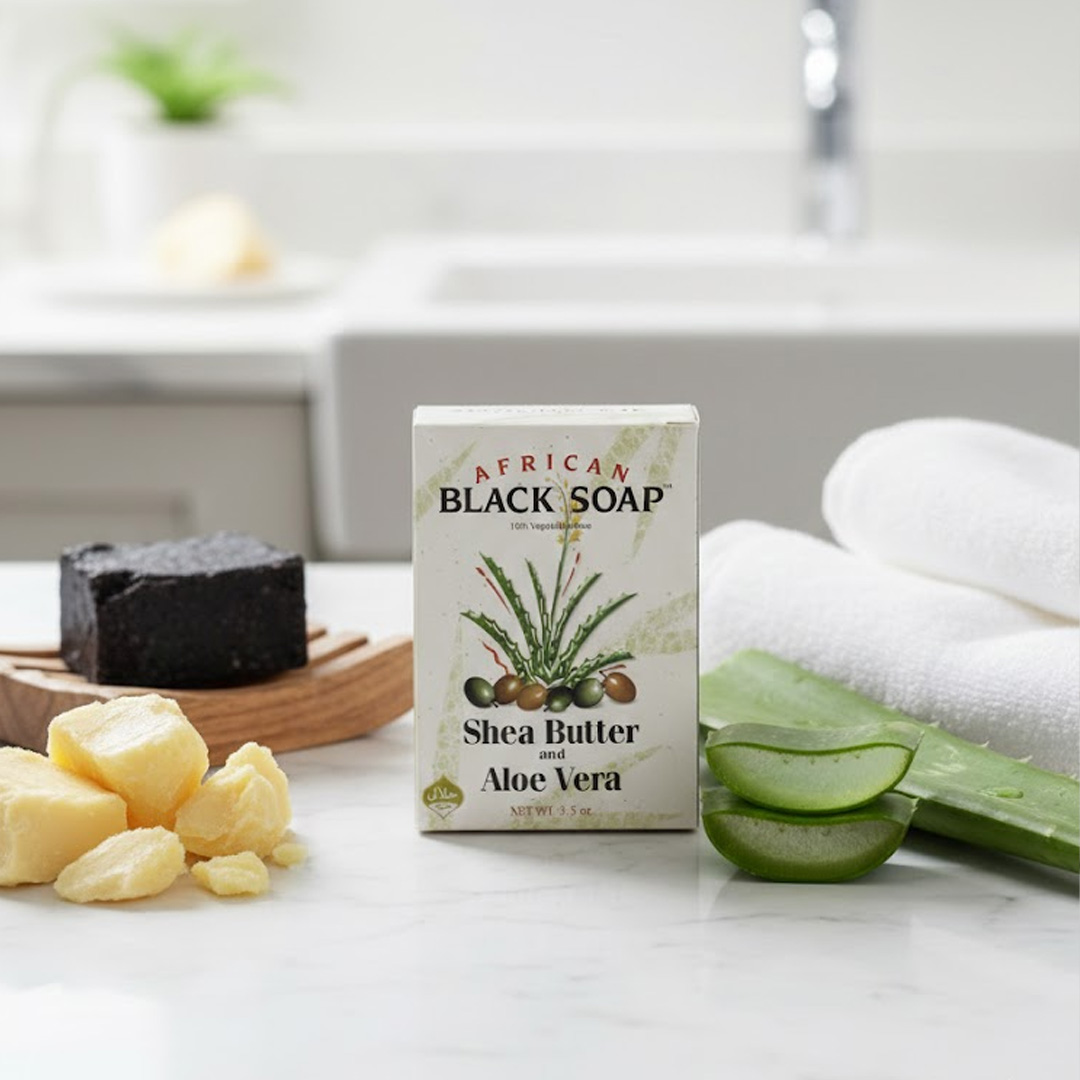 Experience the authentic beauty of the African Black Soap with Shea Butter and Aloe Vera. This specialty body bar is crafted using a 100% vegetable base to provide a deep, purifying clean while remaining incredibly gentle on your skin. By combining the legendary restorative properties of African Black Soap with the intense hydration of Shea Butter, this bar helps to soften skin and improve overall texture.