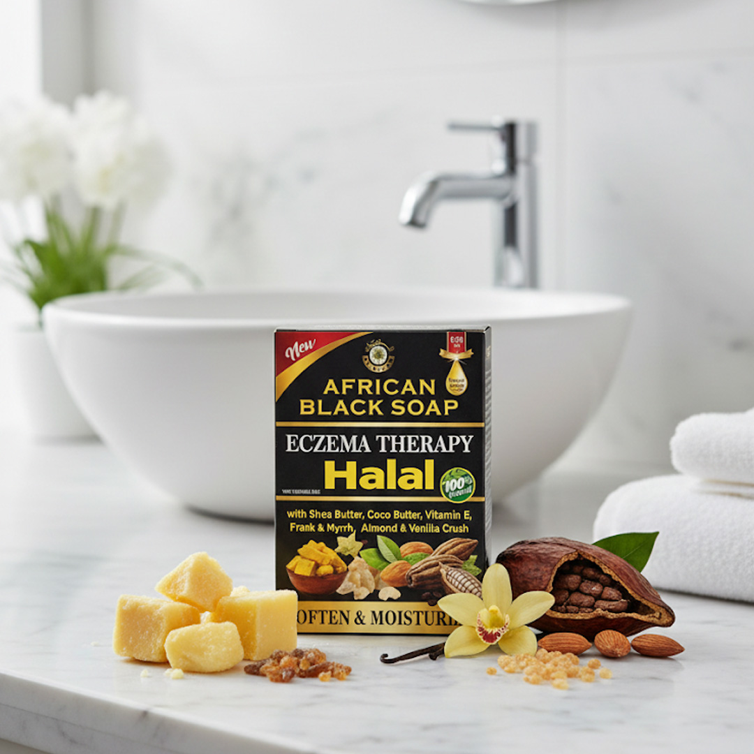 Treat your skin to a gentle, restorative clean with Al-Riyan African Black Soap. Specifically formulated for those seeking effective eczema therapy, this bar uses a traditional blend of plant-based ingredients to help soothe irritation while providing deep hydration. The rich, dark texture comes from a 100% vegetable base that is both Halal certified and free from harsh synthetic chemicals.