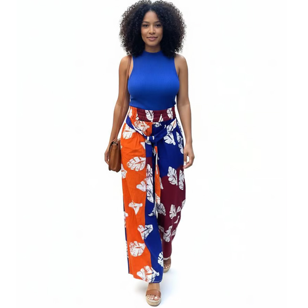 The high-waisted design is tailored to sit comfortably at the natural waistline, while the wide, flowing legs provide a relaxed fit that moves with you. Whether you are heading to a summer garden party, a cultural event, or simply want to brighten up your workday wardrobe, these bold patterned trousers offer versatility. Pair them with a simple fitted tank top to let the intricate leaf motifs take center stage.